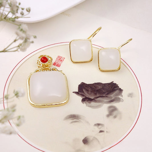 Chinoiserie Gold Silk Jade Mutton Fat White Jade Square Earrings Ring Necklace Set 4PCS常规价格 $48.99 USD常规价格单价 / 单价$98.00 USD促销价 $48.99 USD促销