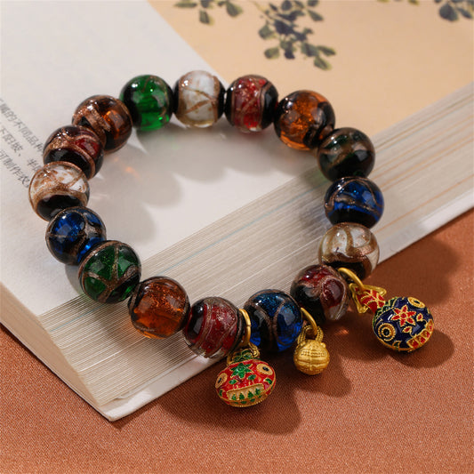 Chinoiserie ash colored glaze women's bracelet, colorful couple's style colored glaze feng shui string
