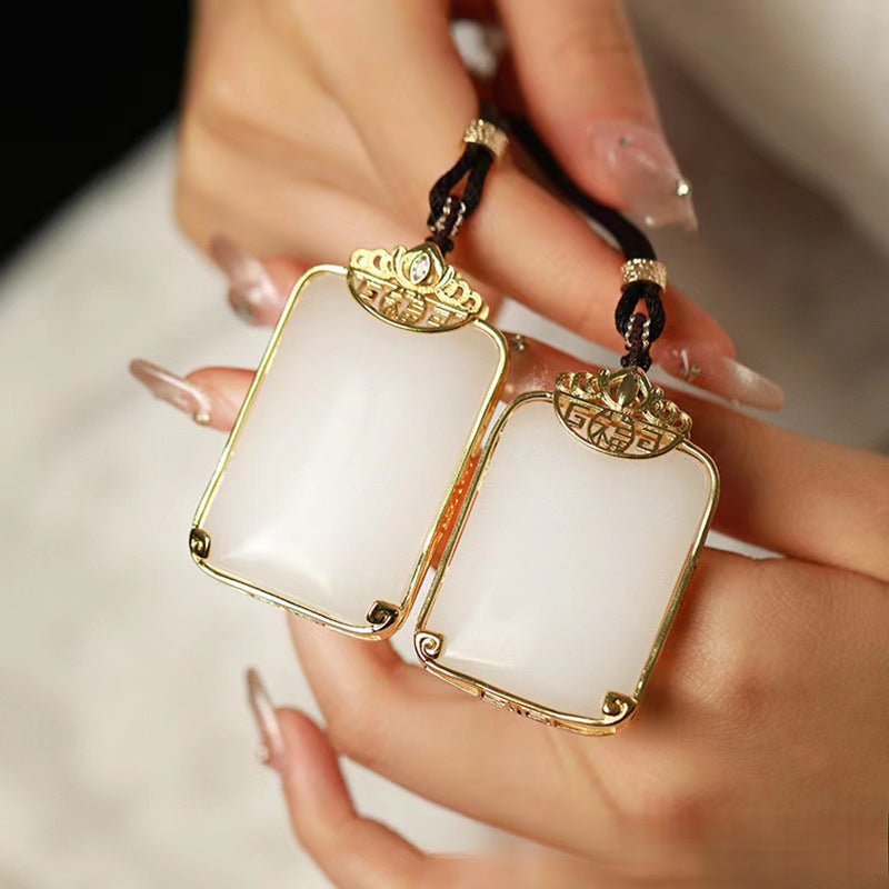 Chinoiserie Hetian jade gold inlaid jade safe and sound jade brand necklace
