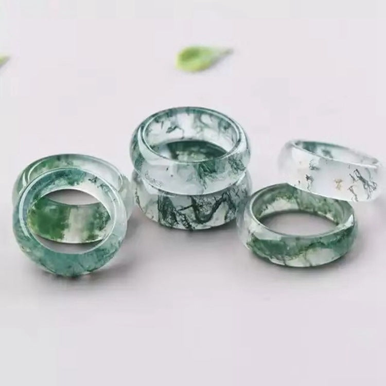 Chinoiserie simple aquatic agate jade ring for men and women couples