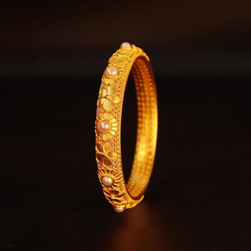 Sand gold flower series pearl inlaid women's bracelet-60MM
